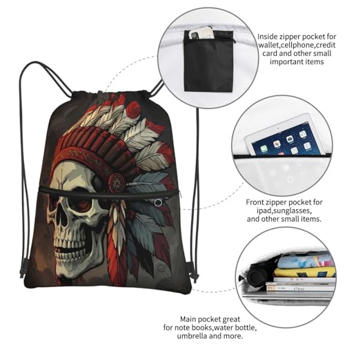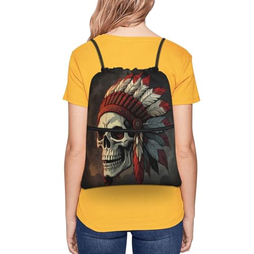 trending ! Retro Feather Skull Black Gym Drawstring Bags Dance Bag Beach Backpack For Shopping