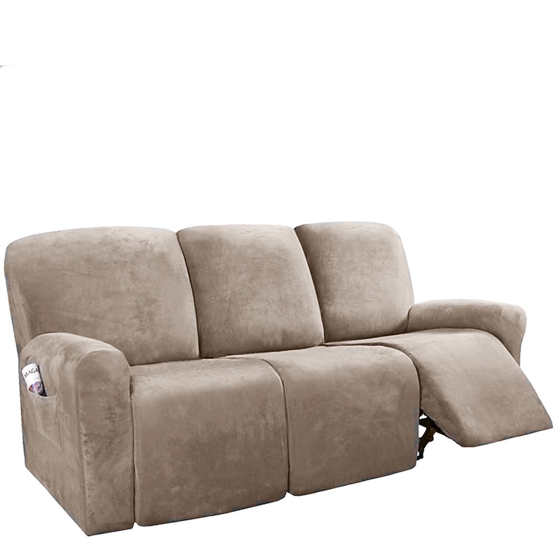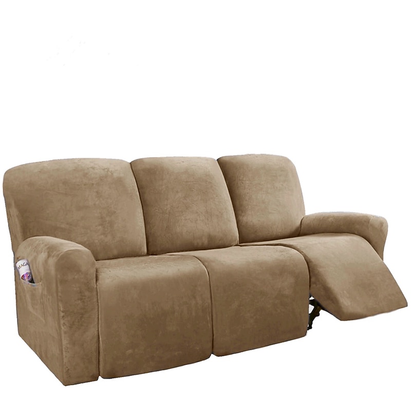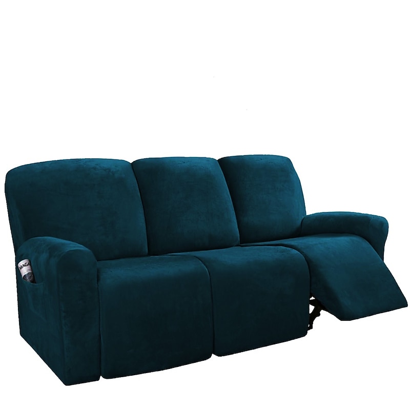 HOT ! 3 Seaters Sectional Recliner Covers Slipcover 1 Set of 8 Pieces Microfiber Stretch High Elastic Burgundy Red High Quality Velvet Sofa Cover for 3 Seats Cushion Recliner Sofa Furniture Protector