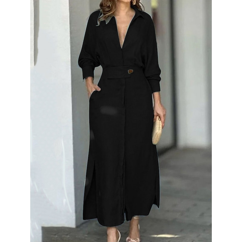 More information about Women's Shirt Dress Long Dress Maxi Dress Pocket Split Daily Date Vacation Active Fashion Shirt Collar Long Sleeve Black White Pink Color