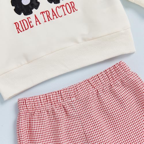 Toddler Baby Boy Fall Clothes Tractor Long Sleeve Pullover Sweatshirt Tops Plaid Pants Set Winter Outfit 0-3T 2