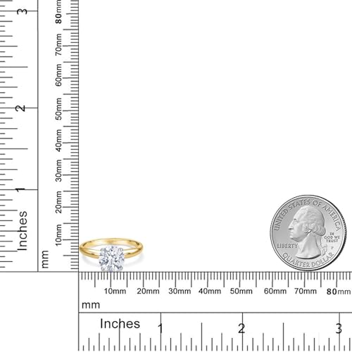 Gem Stone King 14K Yellow and White Gold Solitaire Engagement Ring for Women | Gemstone Birthstone | Round 8MM| Wedding Anniversary Promise Gold Ring For Women | Size 5 to 9