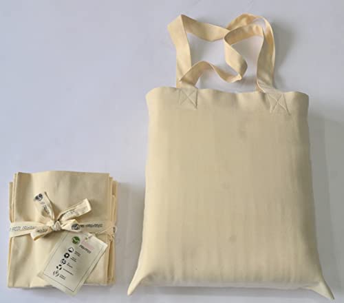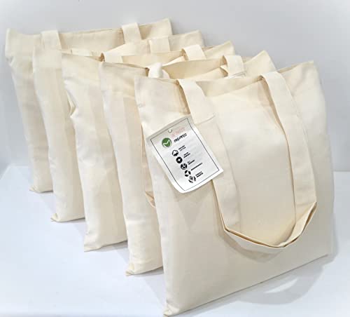 5 PACK 100% ORGANIC COTTON NATURAL FABRIC TOTE BAGS, 15x16 Inch GOTS CERTIFIED, ECONOMIC, REUSABLE, WASHABLE, SUSTAINABLE, ENVIRONMENT FRIENDLY