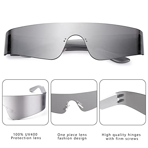 • Fashion Unique Design: The futuristic sunglasses have an one piece and flat top design and aesthetically pleasing appearance, flexible wrap around style frame is full of futuristic technology and is very fashionable.
