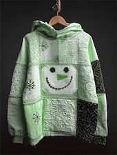 More information about Women's Pullover Hoodie Sweatshirt Graphic Snowman Christmas Casual Long Sleeve Hooded Regular Tops Party Evening Wear Street Dailywear Patchwork Blue Purple Green Beige Spring Fall Winter