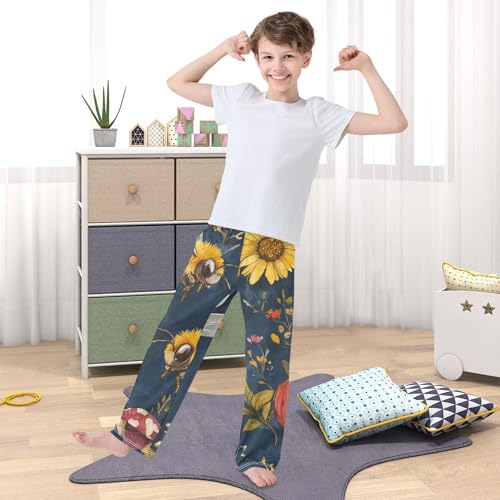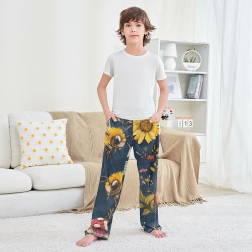 Bee Mushroom Floral Boys Long Pants Soft Trousers Elastic Waist Kids Lounge Bottoms with Pockets S-XL 5