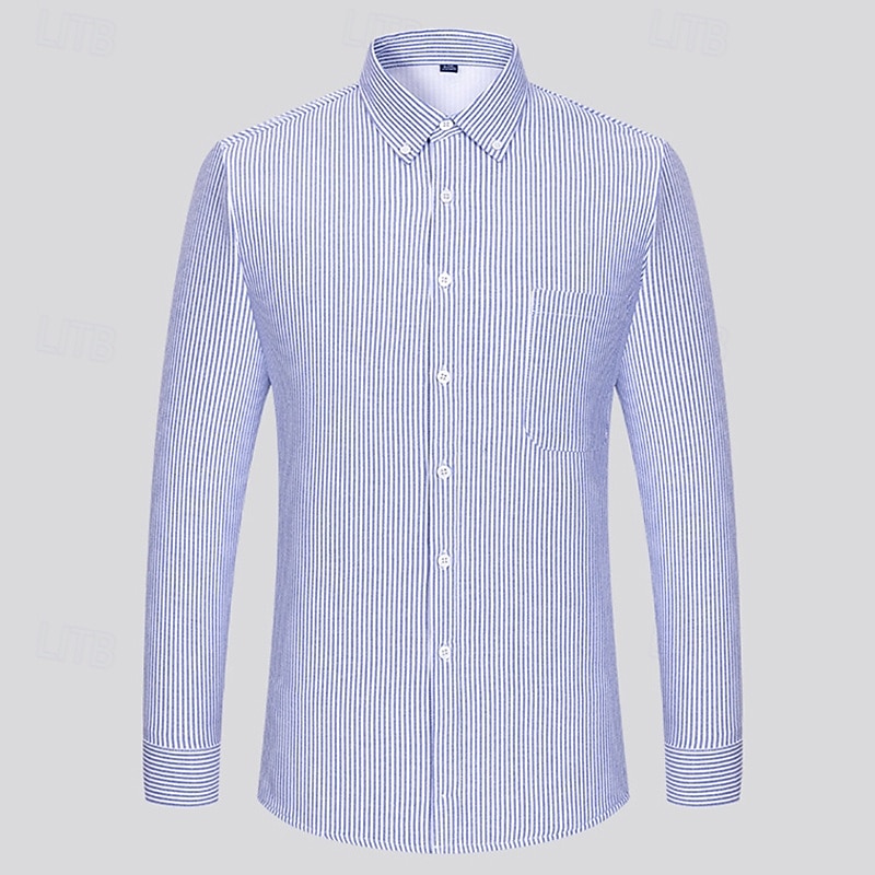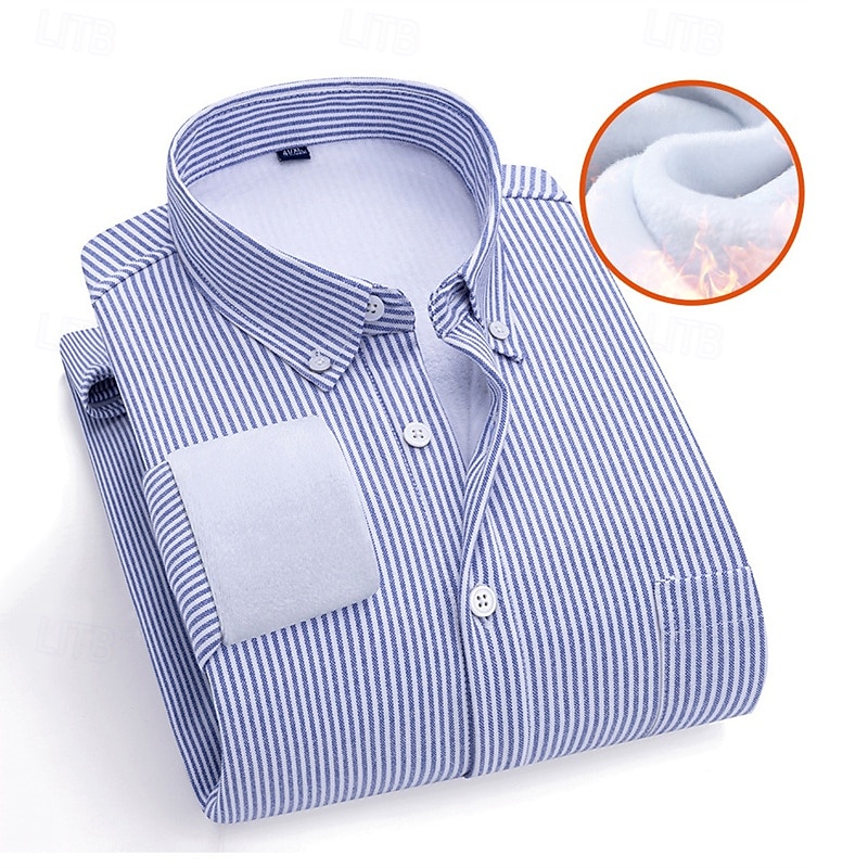 More information about Men's Shirt Dress Shirt Button Up Shirt Striped Wedding Party White Navy Blue Blue Sky Blue Long Sleeve Lapel Fall Winter Clothing Apparel Fleece