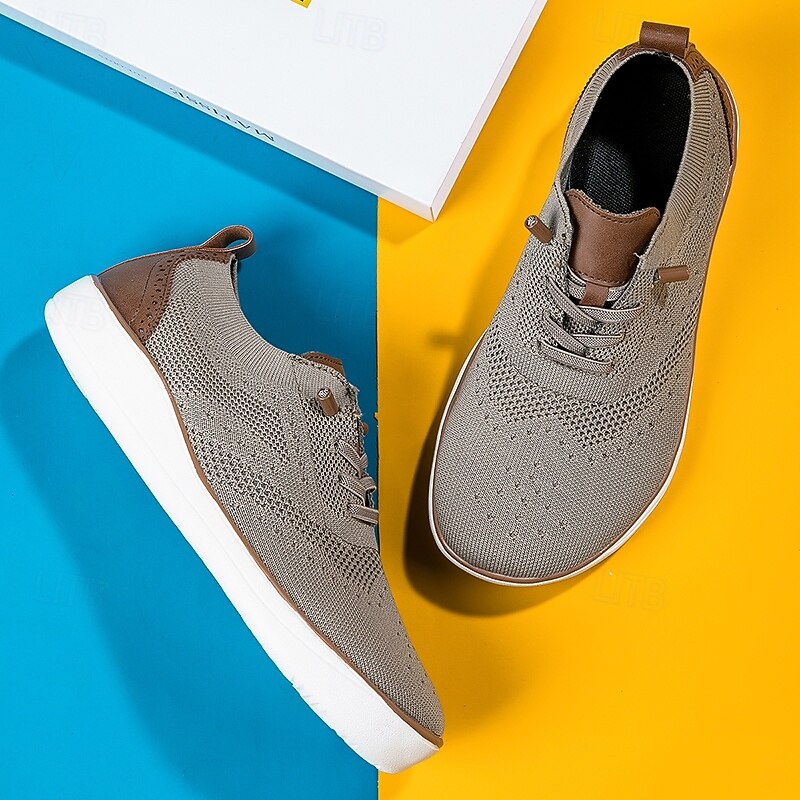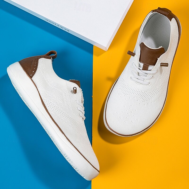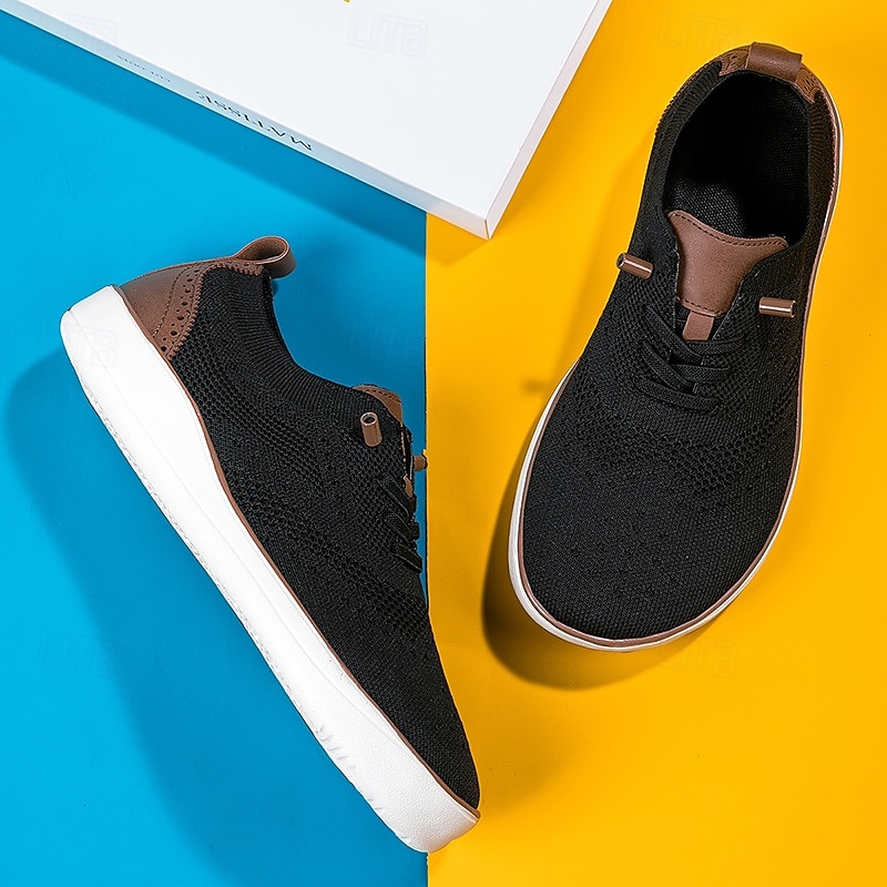 HOT ! Men's Lightweight Barefoot Shoes Knit Sneakers - Breathable Casual Shoes with Lace-Up Design for Walking, Travel and Daily Wear
