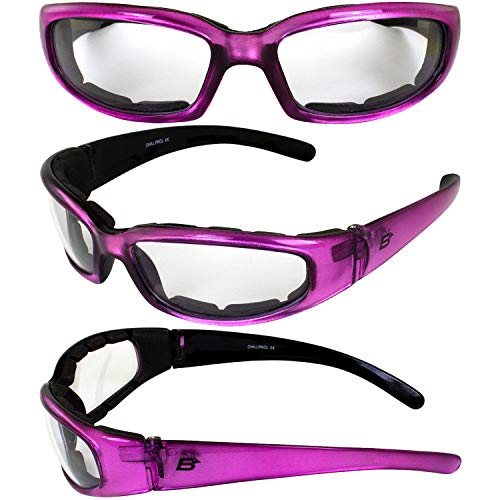 More information about 2 Pairs of MotoFrames Chill Women's Motorcycle Sunglasses Padded Pink Frames Clear & Super Dark Lenses