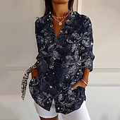 More information about Women's Shirt Animal Print Vintage Stylish Long Sleeve V Neck Regular Tops Daily Holiday Going out Buttons Print Navy Blue Summer