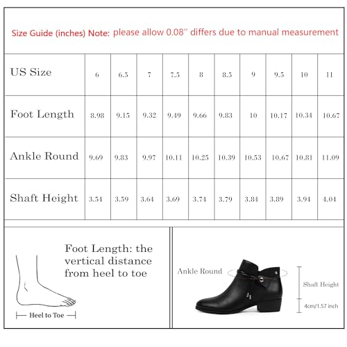 • [Ankle Boots Low Heel]: Heel Height: about 1.57 inch/4 cm.The chunky low heels allow you to walk easily. If you have any size problems, please feel free to contact us.