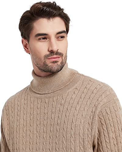 Kallspin Men's Turtle Neck Pullover Wool Blend Lightweight Cable-Knit Pullover Sweater