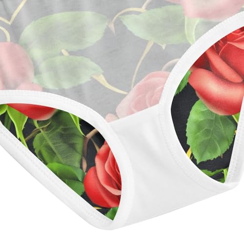 Fun Print Toddler Underwear Floral 2t Cotton Panties for Girl Red Roses Green Leaves Black Briefs Kids Undies 4