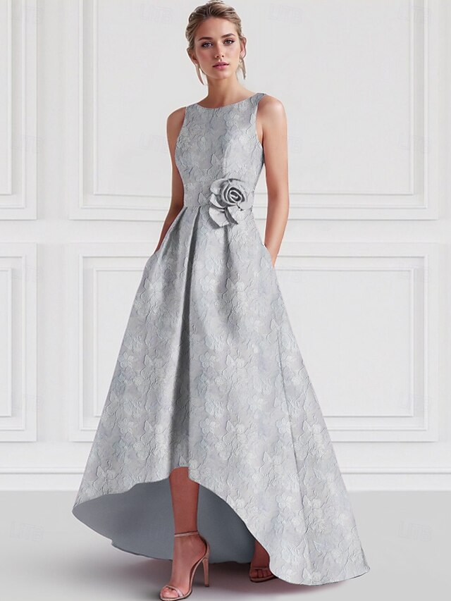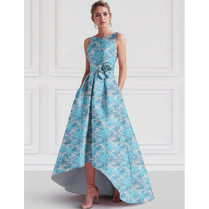 HOT ! Jacquard A-Line Cocktail Dresses Elegant Dress Formal Wedding Asymmetrical Sleeveless Crew Neck Nylon with Floral Print Pocket Wedding Guest Dress