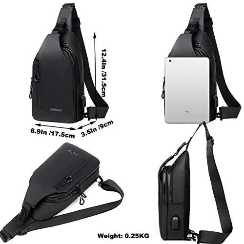 HOT ! Waterproof Sling Bags Mens Shoulder Crossbody Backpack with USB Charging Port& Headphone,Outdoor Lightweight Bag