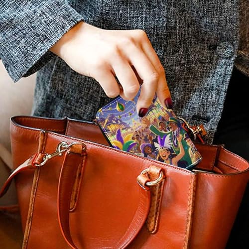Colored Womens Wallets Leather RFID Blocking Credit Card Holders Festive Mardi Gras Carnival Zipper Travel Wallet with Key Ring 7