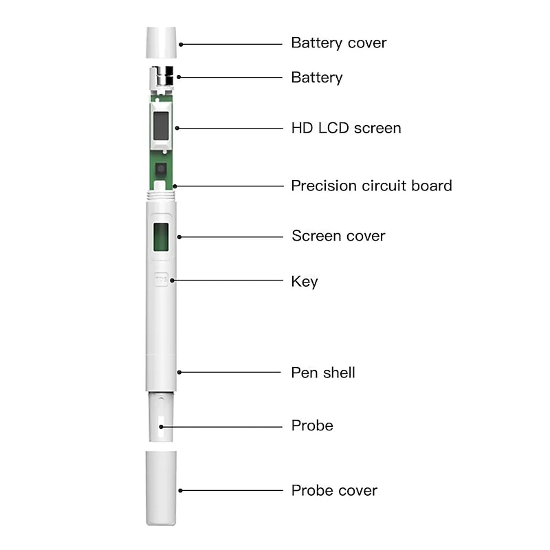 Highlights 1. Our water quality detection pen accurately measures and evaluates the level of water quality, ensuring you are aware of any potential issues compared to expected standards. 2. With its advanced technology, the TDS Pen is capable of detecting and reacting to harmful substances such as organic compounds, heavy metals like nickel and chromium, as well as soluble salt content. 3. Designed for convenience and durability, our pen is waterproof and features automatic temperature calibration, guaranteeing precise measurements every time. 4. Say goodbye to lengthy waiting times! Our gadget provides accurate and stable readings within just three seconds of testing, allowing you to quickly assess water quality on a parts per million scale. 5. Understand the mineral and water salt content in your water with TDS, which stands for total dissolved solids. Stay informed about the purity of your water for a healthier lifestyle.