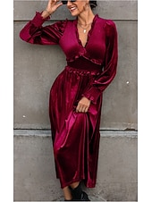 More information about Women's Maxi Dress Velvet Burgundy Long Sleeve V-Neck Elastic Waist Bohemian Evening Party Fall Winter Clothing Apparel Elegant