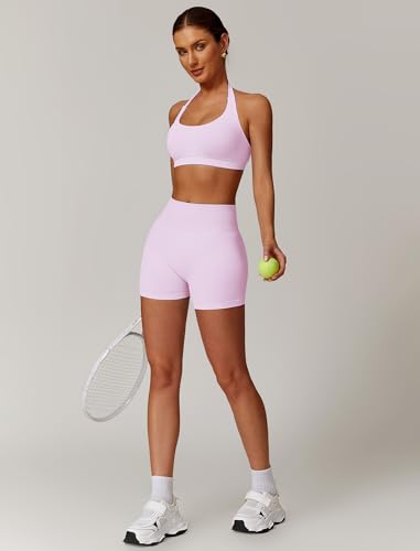 ABOCIW Workout Sets for Women 2 Piece seamless Halter Sports Bra Scrunch Butt Impact Shorts Gym Yoga Outfits 5