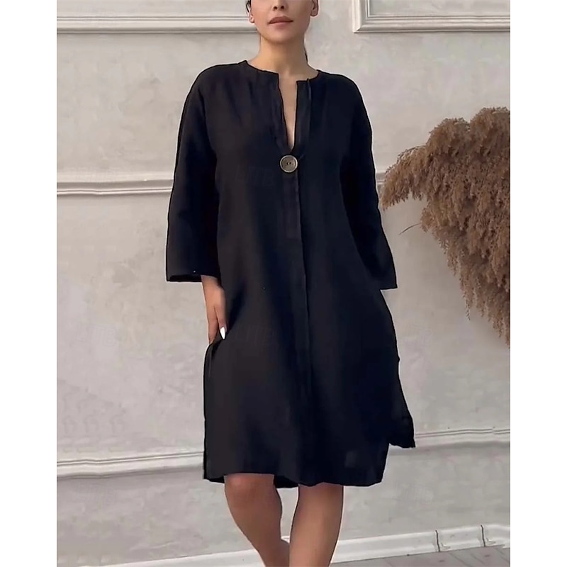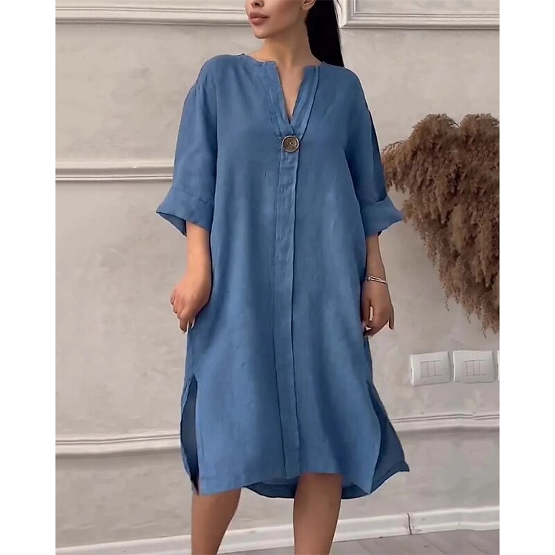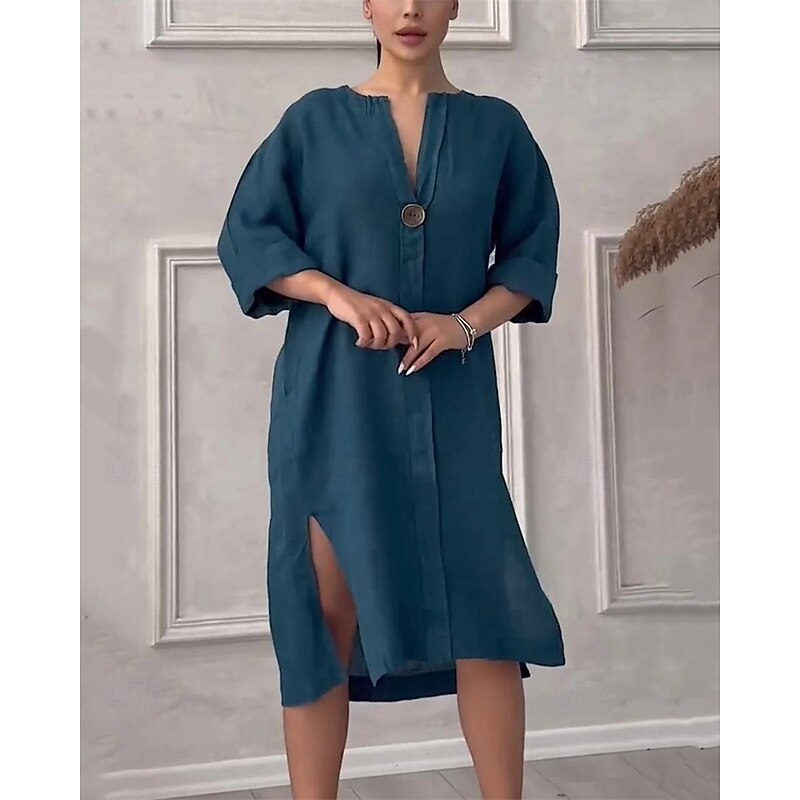 Highlights - Perfect for spring and summer - Made of high-quality polyester - Features stylish long sleeves - Designed for women - Versatile and chic casual style - Suitable for dates, vacations, and daily wear - Casual dress with button details - Flattering V-neck neckline
