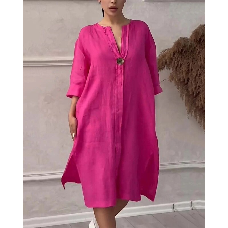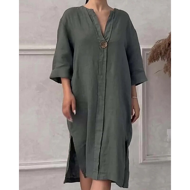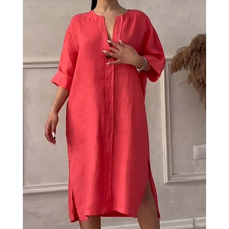 More information about Women's Long Dress Maxi Dress Linen-Inspired Dresses Casual Dress Stylish Casual Vacation Daily Date Regular Fit Plain Long Sleeve V Neck Black Light Green Pink Red Summer Spring