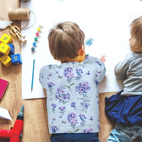 JUNZAN Art Phlox Flowers Blue Big Boys Sweatshirt Hoodie Crewneck Hoodie for Boys Sports 4T