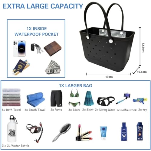 • LARGE CAPACITY BEACH BAG: Measuring 19" x 10.5" x 13.5", this oversized beach tote offers ample space to carry everything you need. Easily fits multiple towels, snacks, sunscreen, toiletries, slippers, and more — all in one roomy EVA tote for the gym, beach, or travel.