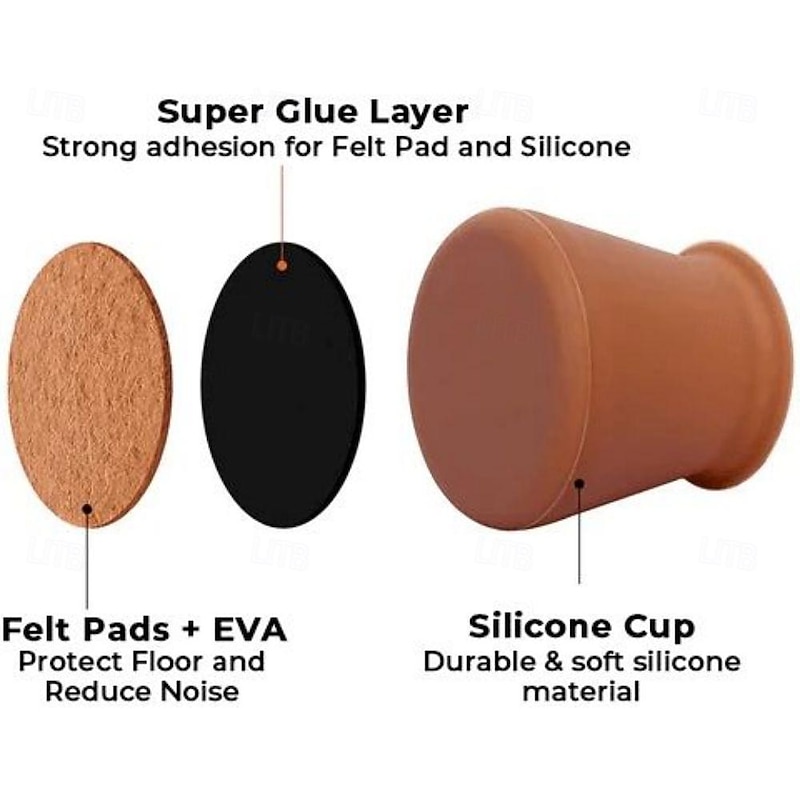 Furniture Leg Caps,Silicone Chair Leg Covers with Thickened Felt Pads: Noiseless Furniture Foot Protectors for Tables, Chairs, Stools 4