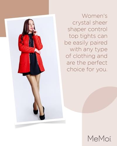 MeMoi Crystal Sheer Control Top Tights for Women, Compression Control Top Tights - Sizes Small to Q2 5