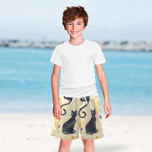 OREZI Boys Swim Trunk Watercolor Cat and Leaf Bathing Suit for Kids 6