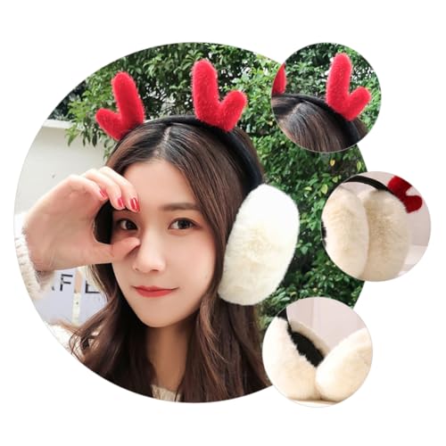 1pc Plush Antler Design Earmuffs for Warmth Adorable Ear Cozy Visual Effect Soft Material for Cold Weather for Girls and Festive Occasions 7