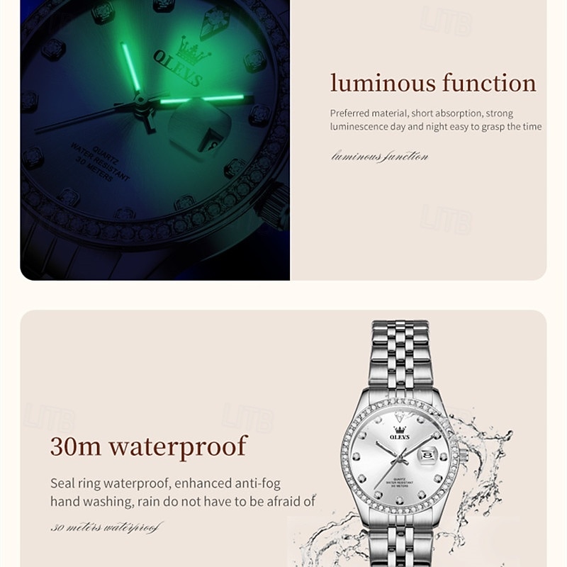 $27.99 - New Olevs Olevs Brand Women'S Trend Fashion Steel Belt Watch Calendar Luminous With Diamonds Simple Leisure Quartz Watch Waterproof Sports Versatile Wristwatch 2025. Shop for cheap Quartz Watches online? Buy at lightinthebox.com on sale today!