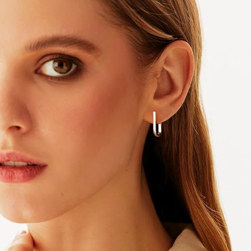 ALEXCRAFT 925 Sterling Silver Hoop Earrings for Women, Hypoallergenic 14K Gold Plated Small Rectangle Huggie Hoop 12x22mm Outer Diameter Medium Square Rectangle Hoops Earrings for Women Jewelry Gifts 4