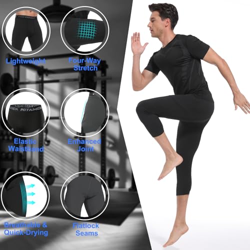 • Senior Compression: Our 3/4 men's compression/running compression shorts/Compression pants for men have an ergonomic design and 4-way stretch fabric that offers unbeatable support to your hip/thigh and calf muscle groups, will help you relieves muscle fatigue and accelerate muscle recovery, double your athletic performance