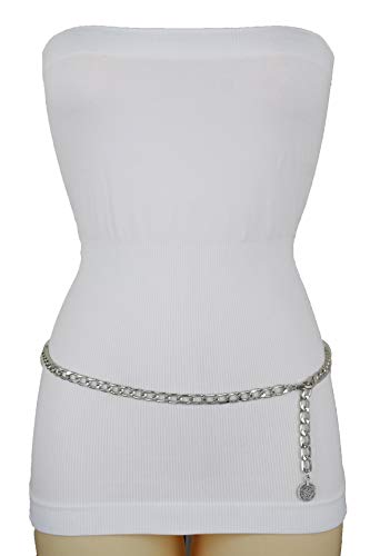 Women Fashion Belt High Waist Hip Silver Metal Chain Coin Charm Buckle Fits Size M L XL 1