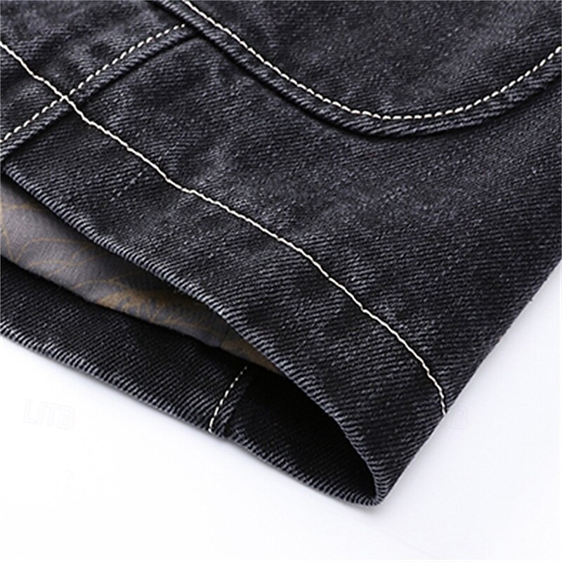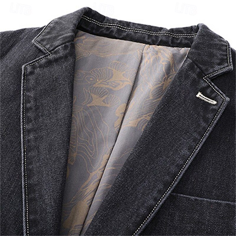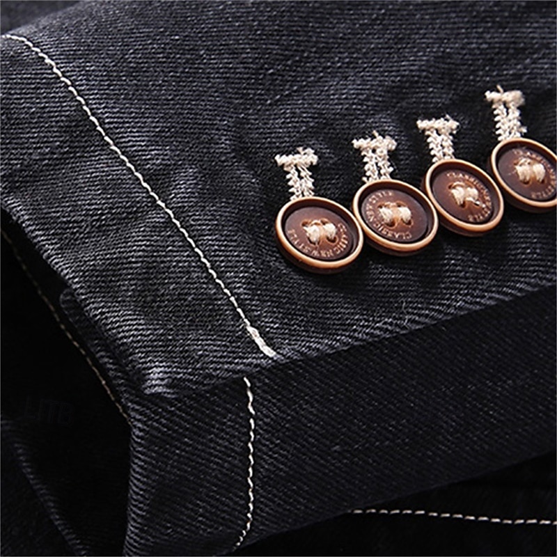 More information about Men's Blazer Denim Jacket Vacation Casual Daily Wear Fashion Casual Spring & Fall Polyester Denim Pocket Buttons Comfortable Single Breasted Blazer Black Grey