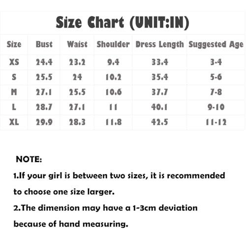 • Size and Washing Care: This dress is available in five sizes and fits girls ages 3-12. If your girl is between two sizes, it is recommended to choose one size larger. Hand wash at low temperature is recommended, bleaching and ironing are prohibited