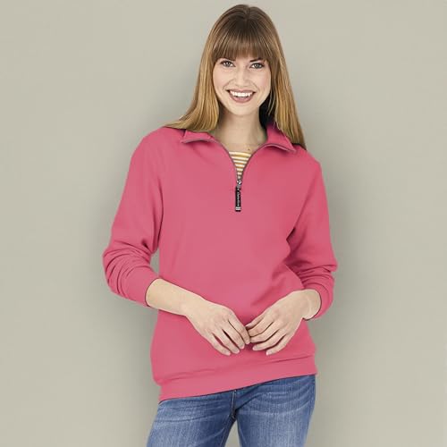 • 1/4 Zip Pullover Features - Relaxed quarter zip sweatshirt has convenient on-seam pockets, durable antique nickel-finished metal zipper, and allover double needle stitching for added durability
