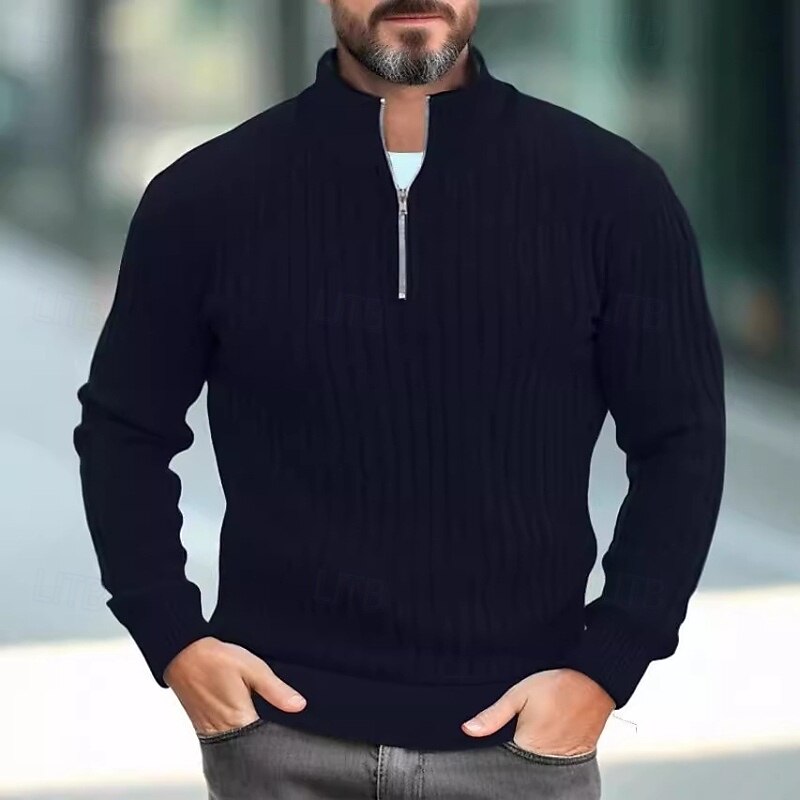 More information about Men's Sweater Pullover Sweater Jumper Ribbed Knit Regular Tops Knitted Slim Fit Plain High Neck Knitwear Contemporary Casual Daily Wear Clothing Apparel Fall Winter Black White M L XL