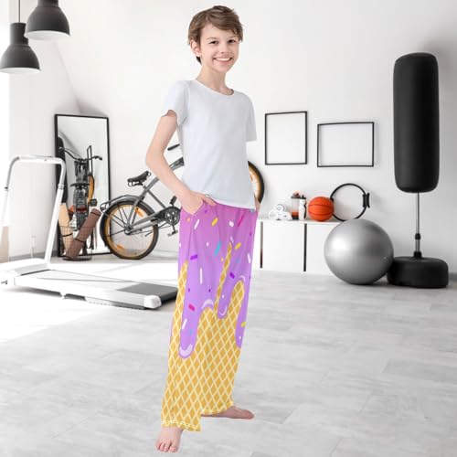 Boy's Pants Purple Color Ice Cream Jogger Pants Elastic Waist Long Bottoms Trousers with Pockets 6-14 Years 6