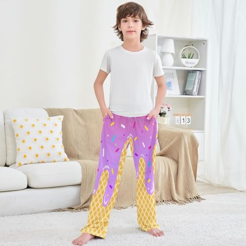 Boy's Pants Purple Color Ice Cream Jogger Pants Elastic Waist Long Bottoms Trousers with Pockets 6-14 Years 2