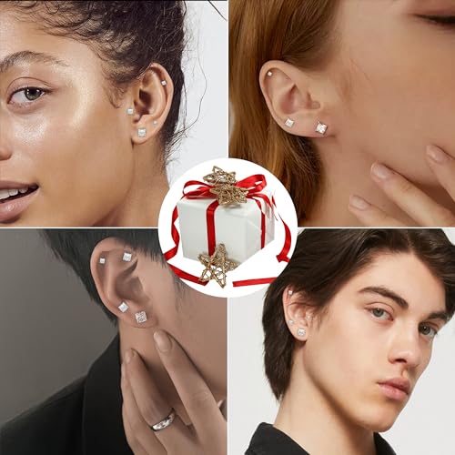 • Mens Cubic Zirconia Earrings Studs: Square earrings for men feature genuine AAAA+ grade Cubic Zirconia, princess cut flawlessly with brilliant fire and high clarity, providing a timeless and classic look suitable for daily wear. The silver stud earrings for women are beautifully crafted, ensuring you shine at every event at an affordable price.