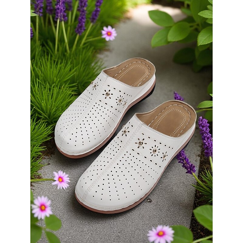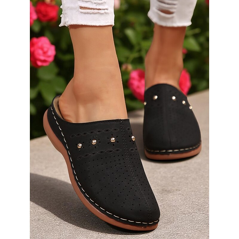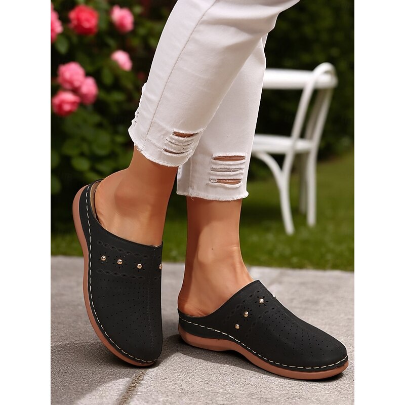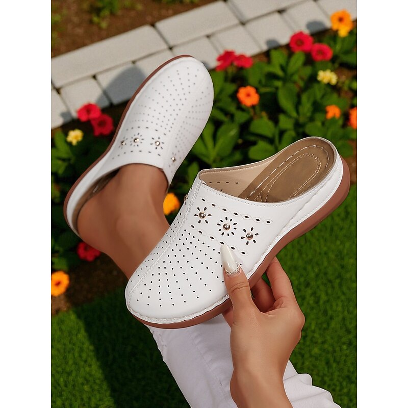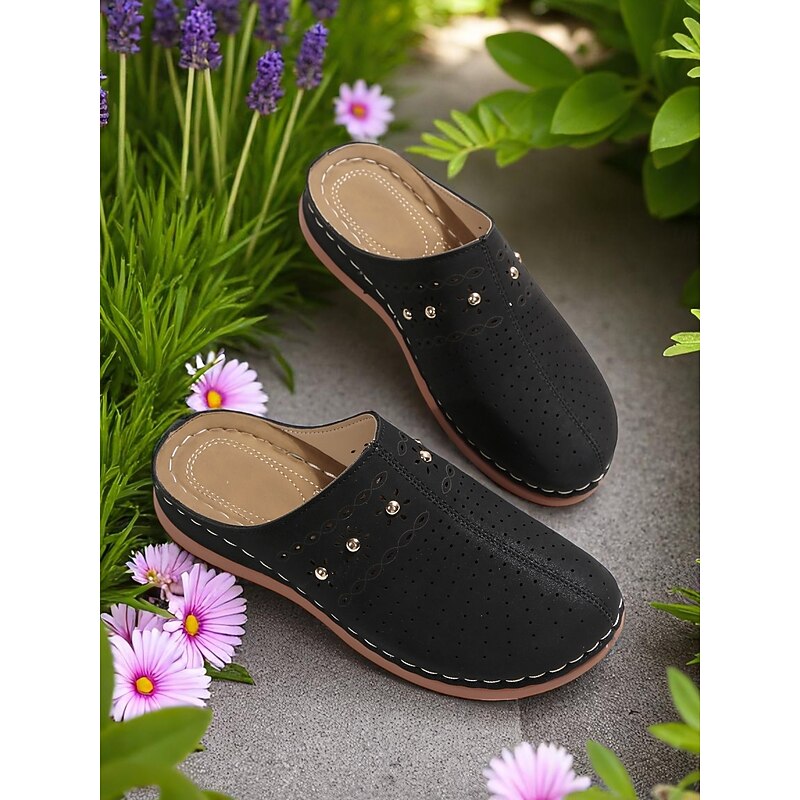 HOT ! Women's Cutout Slip-On Mules – Breathable Comfort Clogs for Casual Days, Backyard Relaxing and Patio Tea Time