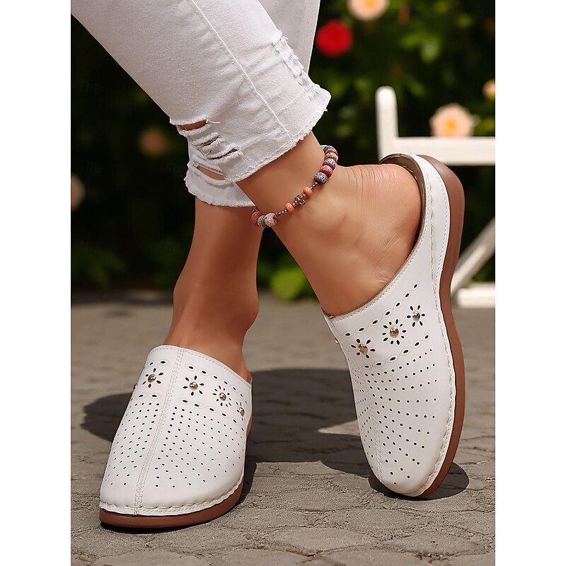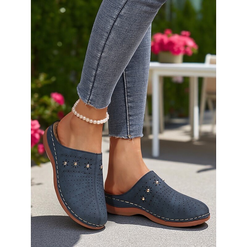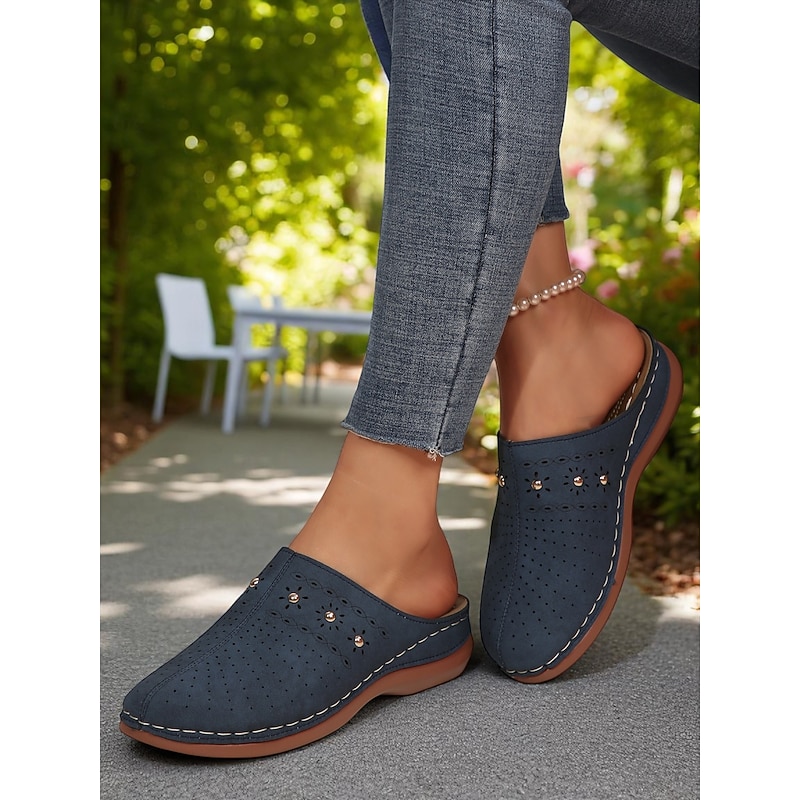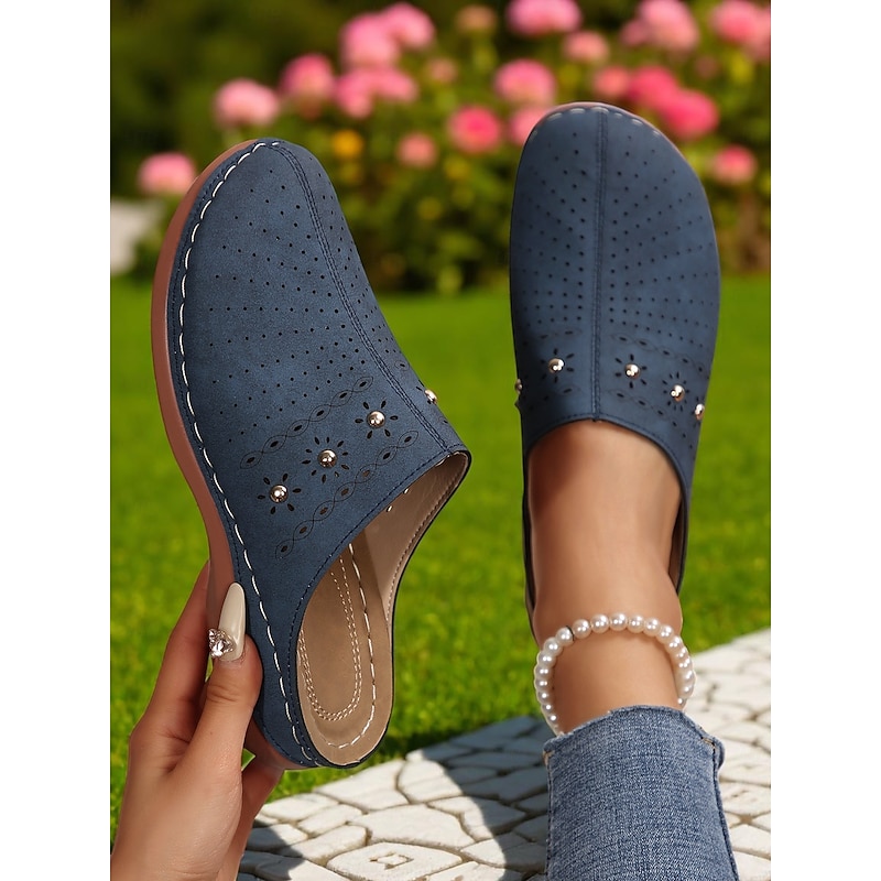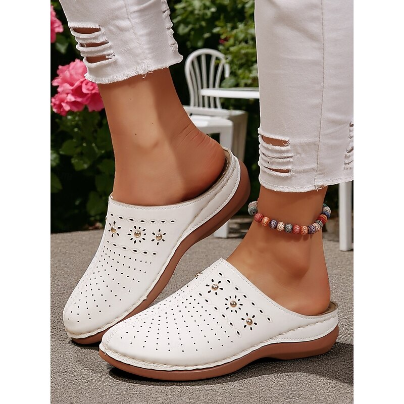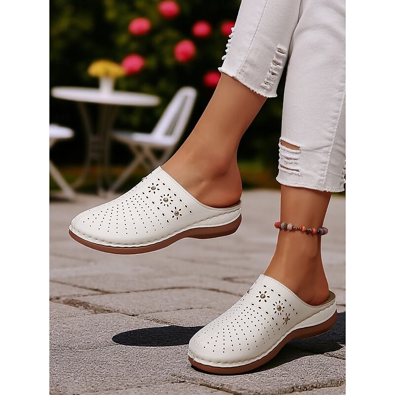HOT ! Women's Cutout Slip-On Mules – Breathable Comfort Clogs for Casual Days, Backyard Relaxing and Patio Tea Time