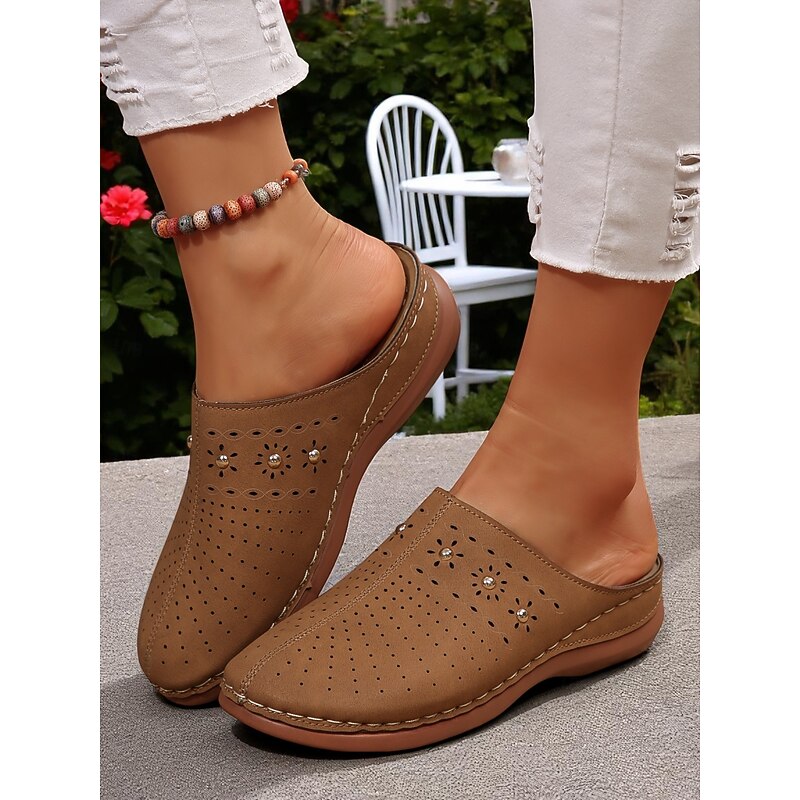 Women's Cutout Slip-On Mules – Breathable Comfort Clogs for Casual Days, Backyard Relaxing and Patio Tea Time 1