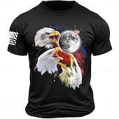 HOT ! Men's Patriotic Graphic T-Shirt, Short Sleeve with Screaming Eagles, Moon & American Flag
