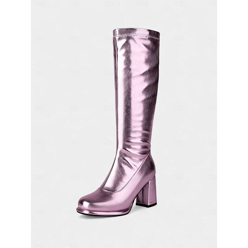Women's 1980s Disco Metallic Gold Knee-High Platform Go Go Boots, Y2K-Inspired Block Heel Boots for Parties, Festivals & Concerts. 25