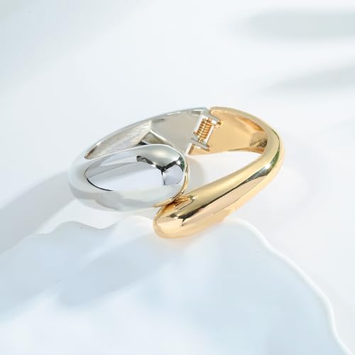 • Highly Polished Two Tone Bracelet: The mixed metal chunky bangle bracelet boasts a high-shine, mirror-like surface that reflects light beautifully. Its smooth, scratch-resistant finish ensures long-lasting brilliance