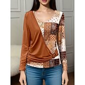 More information about Women's Blouse Paisley Stylish Casual Long Sleeve Crew Neck Regular Tops Daily Patchwork Print Orange Brown Green Gray Spring Fall Winter