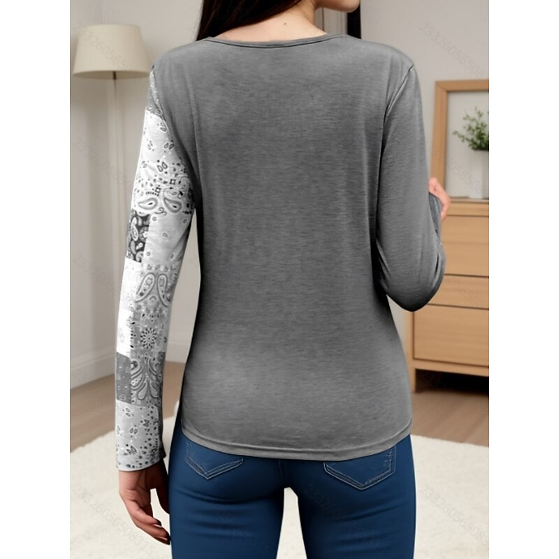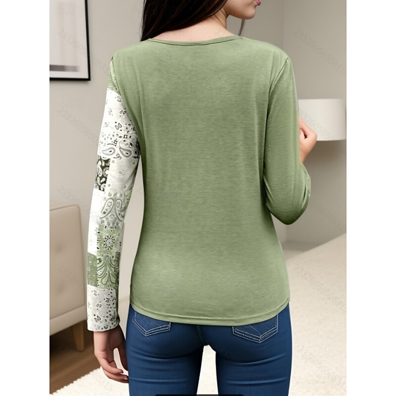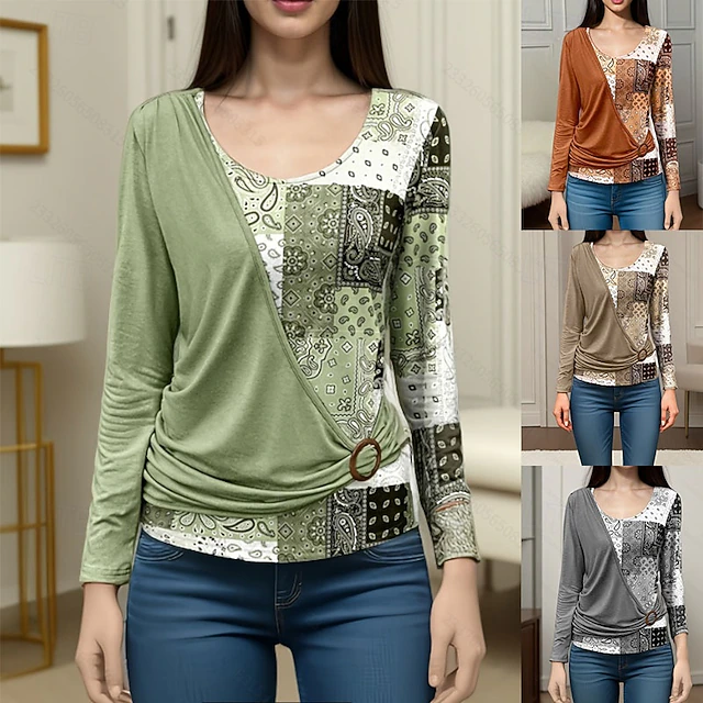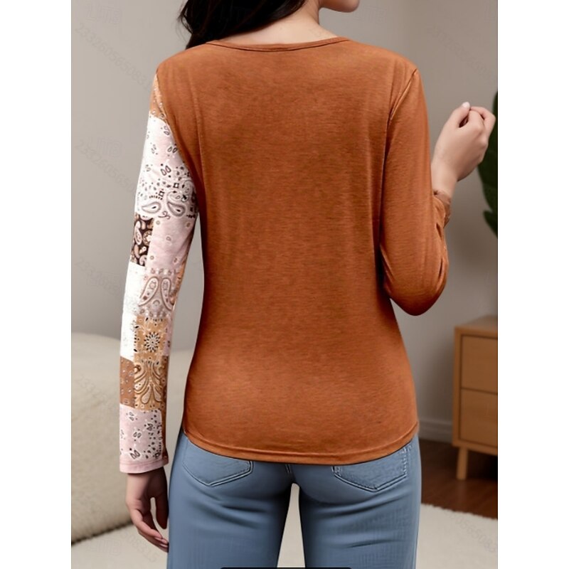 Women's Blouse Paisley Stylish Casual Long Sleeve Crew Neck Regular Tops Daily Patchwork Print Orange Brown Green Gray Spring Fall Winter 13
