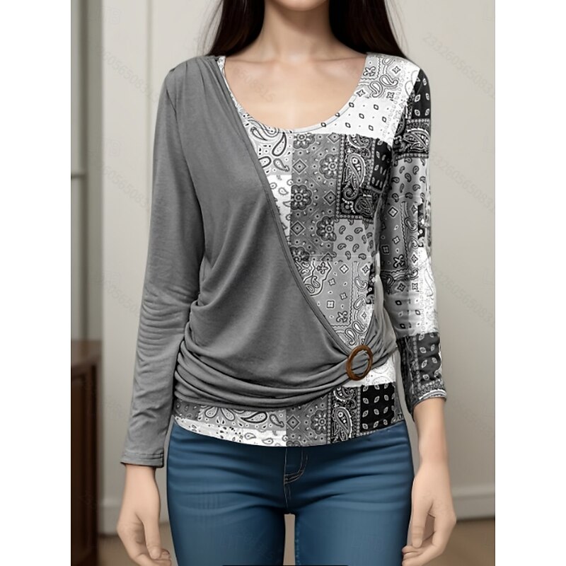 HOT ! Women's Blouse Paisley Stylish Casual Long Sleeve Crew Neck Regular Tops Daily Patchwork Print Orange Brown Green Gray Spring Fall Winter